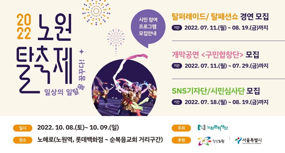 '2022 노원탈축제' 주인공은 바로 그대! 일탈을 꿈꾸는 당신의 참여를 기다립니다:)
