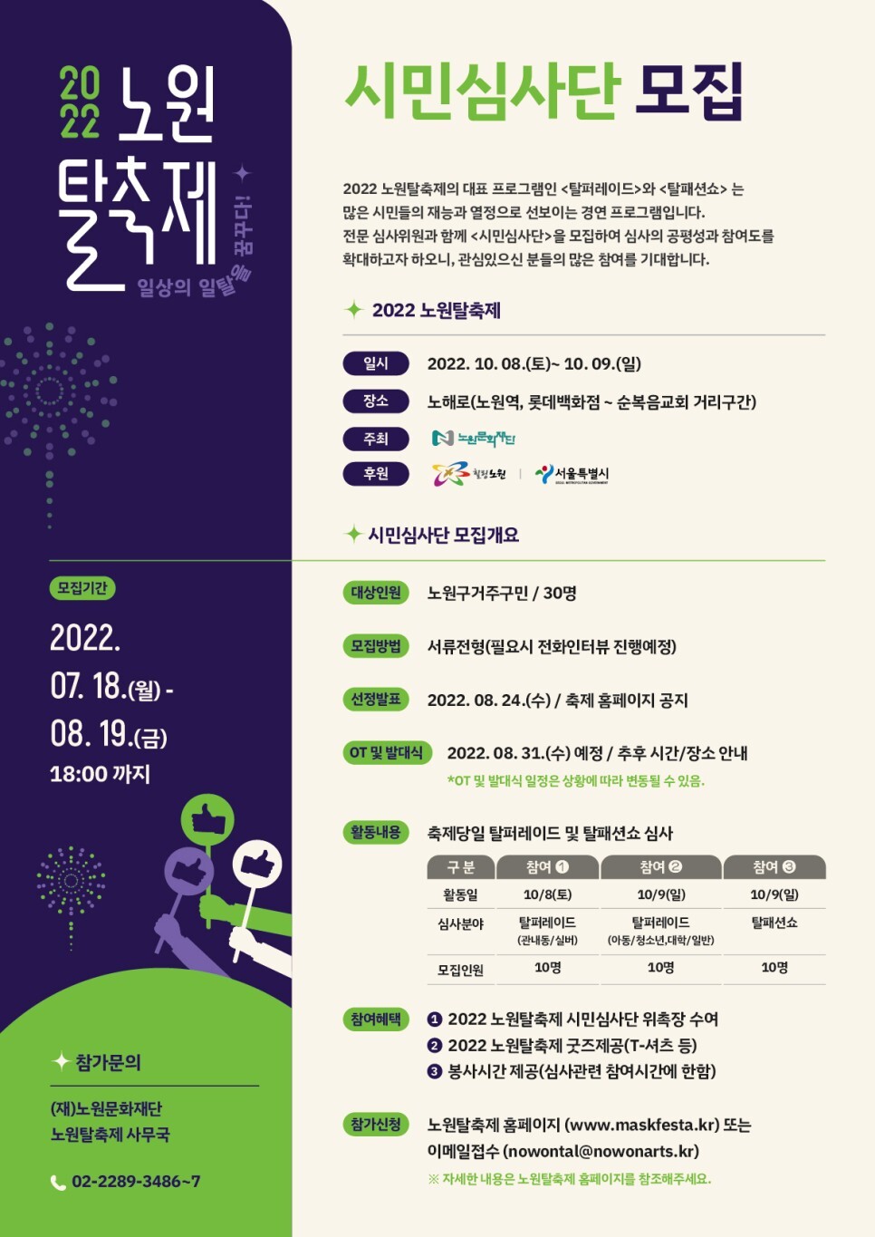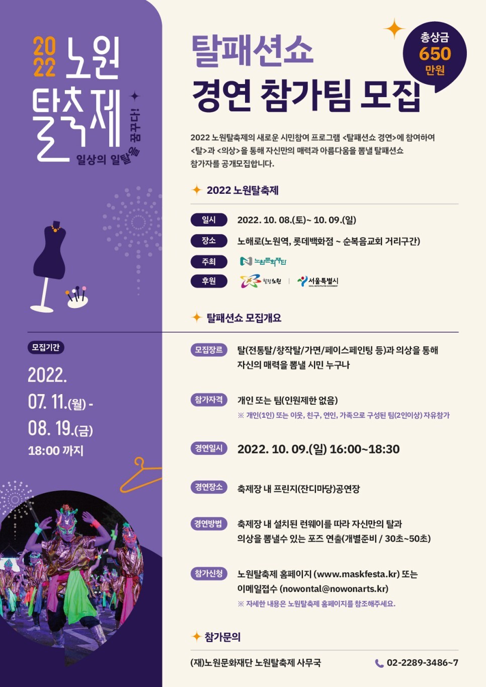 노원문화재단 노원탈축제 사무국 ☎02-2289-3486, 02-2289-3487